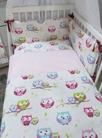 Pościel dziecięca do łóżeczka 5-el. Savea; sowy różowe; 90x120cm