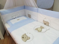 Pościel dziecięca do łóżeczka 5-el. Savea; misie niebieskie; 90x120cm